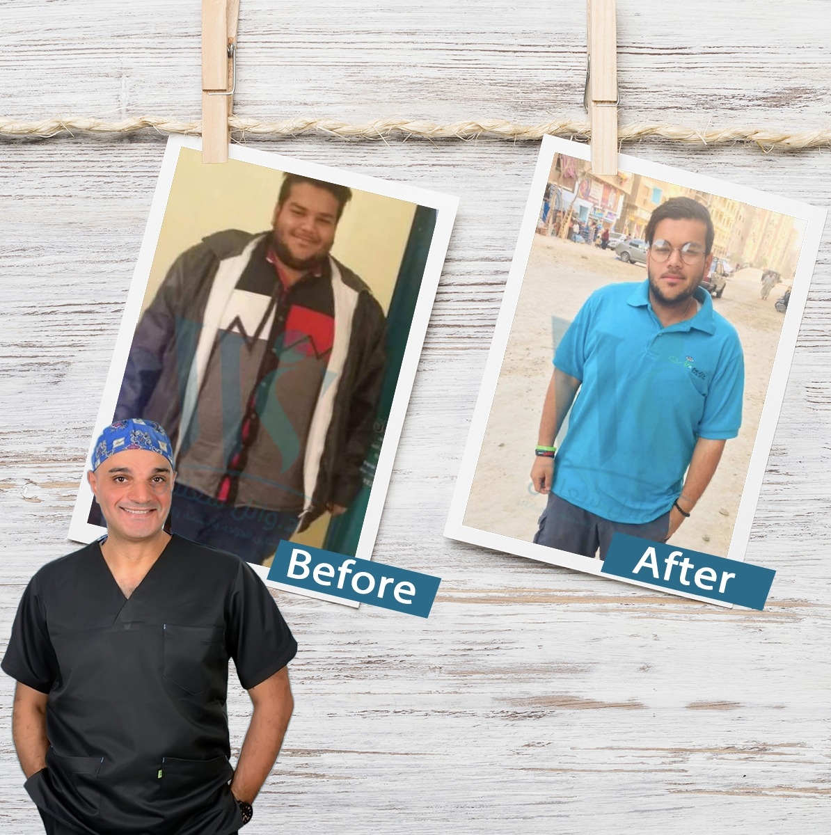 In this image we can see this person having lost a lot of excess weight with Dr. Wael Shaalan, Egypt's best Bariatric surgeon, Via Gastric sleeve surgery and on his way to the perfect weight.